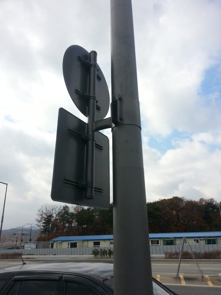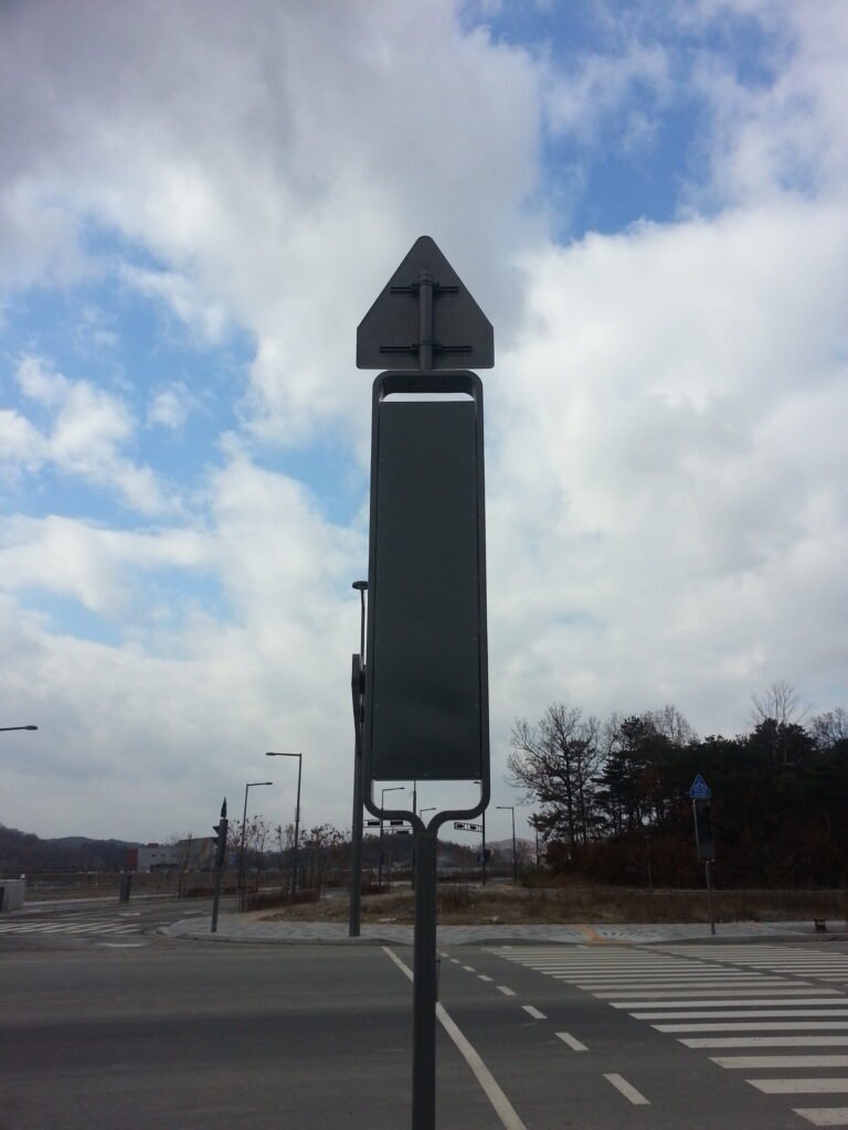 빌딩풍이 잦은 도심지 교차로나 대형 차량의 통행이 많은 구간에서는 표지판 판넬이 지속적인 풍하중과 미세 진동에 노출됩니다. 지주와 판넬 사이를 연결하는 브라켓의 체결 강도가 약하면 판넬이 돌아가거나 심한 경우 이탈 사고로 이어질 수 있습니다.